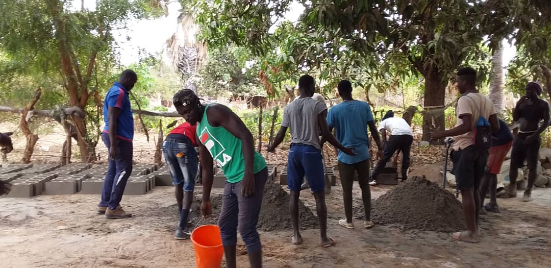 Hard at work building the fence.